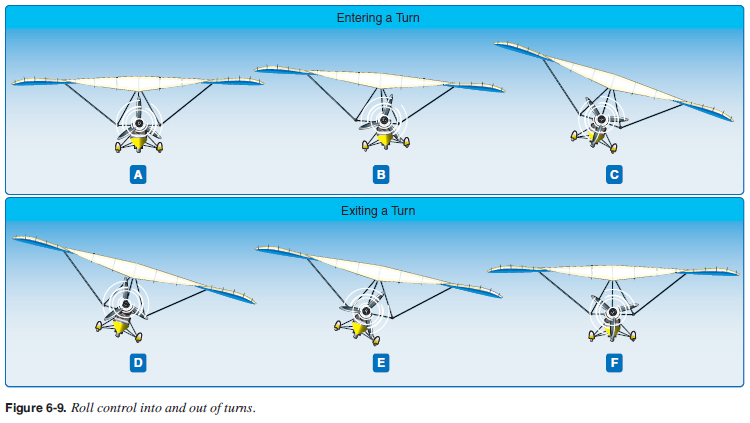 E. Pilot shifts weight to opposite side to initiate exit out of the turn.