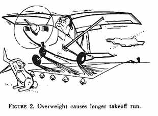 Excessive weight (fig. 2) reduces the flying ability of an airplane in almost every respect. The most important performance deficiencies of the overweight airplane are: