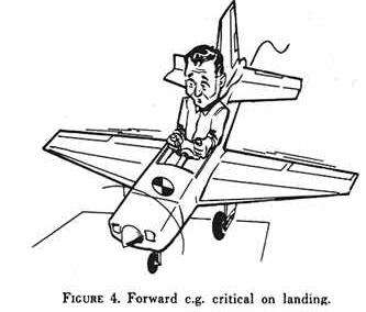 The forward c.g. limit is often established at a location determined by the landing characteristics of the aircraft. It may be possible to maintain stable and safe cruising flight with the c.g. ahead of the prescribed forward limit, but since landing is one of the most critical phases of flight, the forward c.g. limit is placed at a relatively rear position to avoid damage to the aircraft structure when landing (fig. 4).