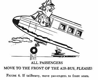 The actual location of the c.g. can be altered by many variable factors - usually under control of the pilot. Placement of baggage and cargo items can both determine c.g. and be used to control c.g. In addition, the assignment of seats to particular passengers can be used as a means of obtaining the most favorable balance (fig. 6). If the aircraft is tail-heavy, it is only logical "horse sense" to place a heavy passenger in a front seat.