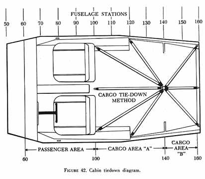 Many of the high density twin engine aircraft can be quickly converted from passenger to cargo use by removing the seats from the main cabin area (fig. 42). In some cases, cargo is carried in the passenger seats and secured by the regular seat belt. It is also possible that only one or two passenger seats will be removed, resulting in a mixture of cargo and passengers in the main cabin. Measures must be taken in this case to protect the passengers from possible cargo movement.