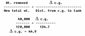 Conditions may arise during flight, such as engine failure or an aircraft system failure, which may require a landing sooner than originally planned. In this event, fuel may have to be dumped to reduce weight to maximum landing weight. If the fuel dumping procedures contained in the aircraft flight manual are followed, c.g. travel will remain within prescribed limits. Calculations of the effects of fuel dumping are similar to those used for fuel burn. Use of the fuel load table moments makes the calculations simple. Some manuals will provide a fuel tank centroid as a single arm, then the effect of fuel dumping can be calculated by a single remove weight formula such as the one which follows: