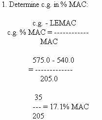 When the c.g. is determined to be located at a particular station, that location must first be converted to % MAC to use the stabilizer trim chart. A typical problem follows: