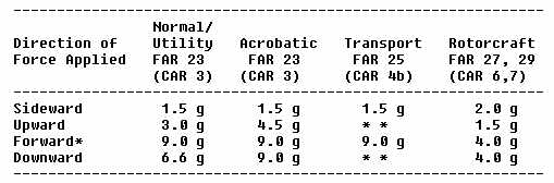 * When equipment mounting is located externally to one side, or forward of occupants, a forward load factor of 2.0 g is sufficient.