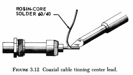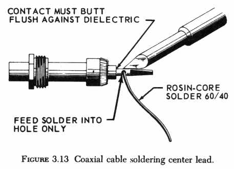 (3) Solder the contact to the center conductor. Use a clean, well-tinned soldering iron. {See Figure 3.12.}