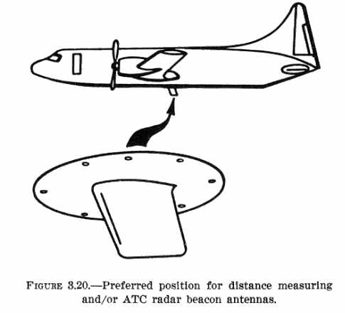 (1) The antennas shown in figure 3.4 are normally installed at a point on the fuselage directly above the cabin or baggage compartment.