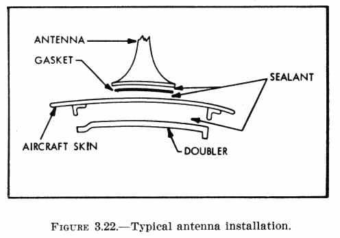 The use of doublers, to reinforce the aircraft skin to support antennas, is previously described in this chapter. The material contained in this paragraph concerns the methods of applying sealant to guard against the passage of air, liquids, and vapors from pressurized structures.