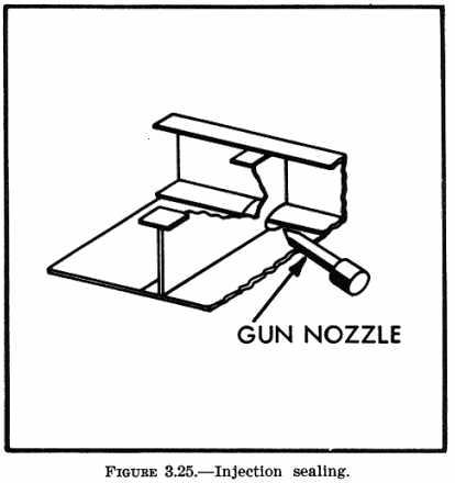 (4) Fill holes and joggles by injecting the sealant into the voids and/or cavities. This method is used where the sealant cannot be applied with a spatula or brush. Figure 3.25.