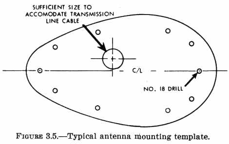 (1) Place a template similar to figure 3.5 on the fore-and-aft centerline at the desired location. Drill the mounting holes and the correct diameter hole for the transmission line cable in the fuselage skin.