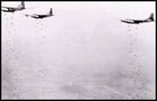 August 1950 Additional B-29s were sent to the Far East in August 1950 for the specific purpose of knocking out North Korea's industrial capacity. A concentrated strategic bombing campaign was begun and by the end of September, the task had been completed, practically every industrial target of significant size in North Korea had been destroyed. As a result of the constant pounding of rail and road traffic from the air, North Korean troops on the Pusan perimeter were virtually isolated from their sources of supply. In early September 1950, heavy losses suffered during attacks against U.N. forces reduced the "North Korean People's Army" to a mere fragment of its original size. On September 15, U.N. troops landed far to the north at Inchon, isolating the remnants of the North Korean Army still deployed around the Pusan perimeter. An offensive was then launched by the U.N. forces into North Korea, including the dropping of paratroopers near Pyongyang, the capital of the aggressor nation. By late October, U.N. forces had advanced northward through most of North Korea. Three F-51 pilots from the 40th Fighter Squadron stationed at Pusan. Capts Ward, Sanders, and Roberts (the flight commander) walk from their planes following a mission over North Korea. |