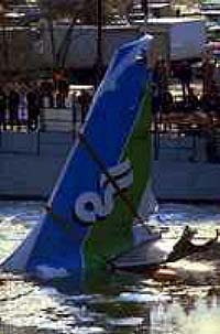 It came to rest on the west side of the bridge 0.75 nmi from the departure end of runway 36. Four passengers and one crewmember survived the crash. When the aircraft hit the bridge, it struck seven occupied vehicles and then tore away a section of the bridge railing. Four persons in the vehicles were killed; four were injured.