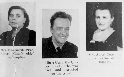 Albert Guay places a bomb on a Canadian Pacific Airlines DC-3 out of Quebec, Canada in order to collect on an insurance policy he had on his wife. He, along with two accomplices were executed for the crime. Guay, a jewler, in a plot to kill his wife, a passenger on board had his girl friend air express the bomb on the aircraft. The girlfriends brother made the timing device that was used to blow-up the plane. The aircraft just 40 miles outside Quebec at 7000 feet blew up killing all 23 on board. Authorities caught up with the three and they were hanged. All for a $10,000 dollar policy. |