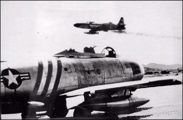 By September 1, 1951, the Communists had 525 MiGs in action against only 105 USAF F-86s. The enemy decided to overwhelm U.N. air forces to gain aerial superiority and began concentrating on destroying USAF F-84 fighter-bombers flying at low altitudes. The USAF then doubled its F-86 force in order to have sufficient "Sabres" for both escorting friendly airplanes and for intercepting enemy planes. USAF combat results rapidly improved. |