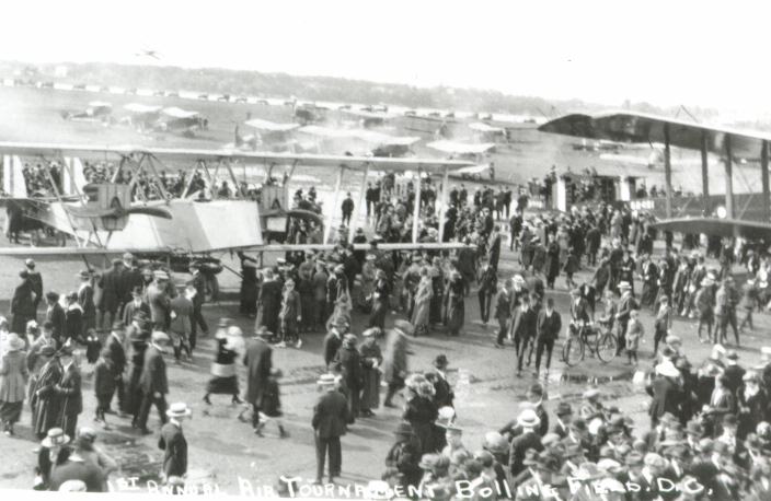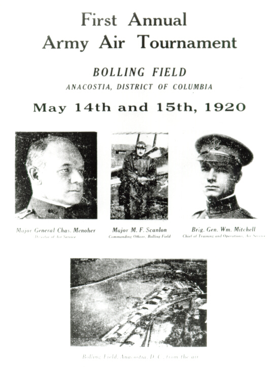 Bolling Field was the place to be in May 1920 as more than 10,000 Washingtonians flocked to the field to see the first Army Air Tournament. It was an aerial show of unprecedented success for the Army Air Service, as its brave pilots performed daring feats of speed and acrobatic agility high above the awestruck crowd. The first day of the show was so successful that thousands of requests to extend the event poured into the office of the Chief of the Air Service, General Menoher.