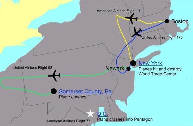 World Trade Center Map Of Route Planes Took Just Before Hitting The Towers