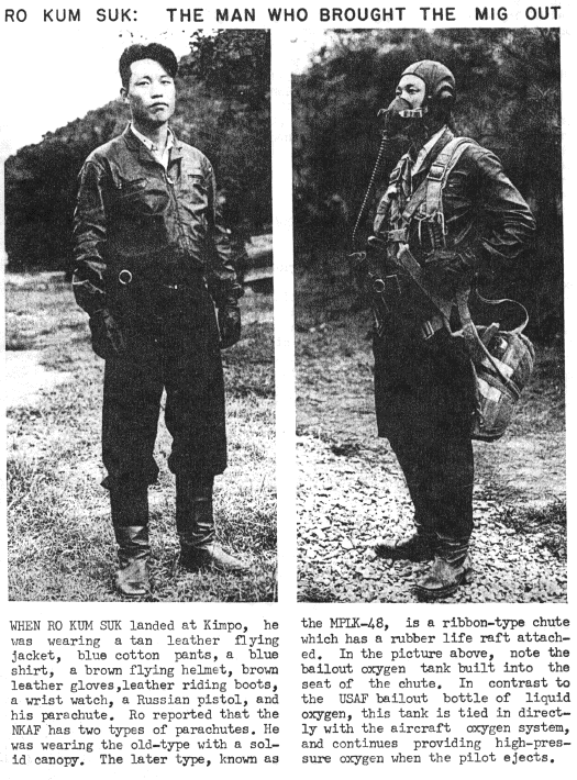 On 21 September 1953 a disenchanted North Korean pilot made a decision that changed his life and American history. Lt No (pronounced ro) Kum Suk was through with the North Korean government and determined to make a break for freedom. Lt. No was a fighter company commander in the second Regiment of the North Korean People's Air Force. He thought about defection number of times before, yet could not do it until his unit moved south to Sunan Airfield outside of Pyongyang after the war was over. He normally flew MiG-15bis Red 408, but on that he flew a MiG-15bis with the tactical number Red 2057. His regular aircraft had not arrived at Sunan yet. Number 2057 was normally flown in combat by a pilot named Kim Dea-Soon. It had been one of the first MiGs smuggled by rail back into North Korea from Manchuria after the cease-fire and re-assembled. The "2057" was a recently painted North Korean number, replacing its original Soviet tactical number. The fact that 2057 was a "bis" model, or advanced model of the MiG15, made it more desirable for the Americans. Its VK-1 engine had 1,000 lbs more thrust than the RD-45 engine of the earlier version, and had hydraulic ailerons. It was a real catch for the Air Technical Intelligence Center to get an updated version of this jet. During his escape, Lt No purposely allowed another pilot to take off first. This was the first flight from Sunan since the war ended, and it was quite an honor. The other pilot readily accepted. Lt No hoped the first pilot would take his time and it would divert attention from his planned escape. He flew as second aircraft in the flight of three. Near the end of his flight, No broke to the south instead of landing in Sunan. It took only about thirteen minutes to make a straight approach. He made a downwind landing with F-86s landing on the same runway, scaring the pilot to death. He parked alongside an F-86 sitting alert on the ramp. He jumped down and began shaking hands. Although he did not know it at the time, the US offered $100,000 to the first pilot to fly a MiG-15 to the south. He found out at a news conference. The MiG was partially disassembled by Air Tactical Intelligence Center at Kimpo and flown in a C-124 to Kadena AB, Okinawa to be test-flown. PROJECT ZETA began. The USAF removed the North Korean markings and replaced them with small USAF markings. The US pilots did 11 test flights, and pushed the MiG probably harder that the Russians ever tested it. Test engineers had to modify some of the instrumentation, yet found the MiG very easy to work on. |
