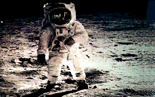Jul. 16-24, 1969: The first lunar landing mission, Apollo 11 lifted off on July 16, 1969, and after confirming that the hardware was working well began the three day trip to the Moon. At 4:18 p.m. EST on July 20, 1969, the Lunar Module with astronauts Neil A. Armstrong and Edwin E. Aldrin landed on the lunar surface while Michael Collins orbited overhead in the Apollo command module. After checkout, Armstrong set foot on the surface, telling the millions of listeners that it was "one small step for a man, one giant leap for mankind." Aldrin soon followed him out and the two plodded around the landing site in the 1/6 lunar gravity, planted an American flag but omitted claiming the land for the U.S. as had routinely been done during European exploration of the Americas, collected soil and rock samples, and set up some experiments. The next day they launched back to the Apollo capsule orbiting overhead and began the return trip to Earth, "splashing down" in the Pacific on July 24. |