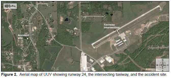 Another witness in the backyard of a residence northwest of the airport reported that she saw the airplane flying straight and level but very low over the trees before it dived nose first to the ground. She and her father called 911, and she said that local emergency medical service personnel arrived within minutes. The airplane impacted trees and terrain and came to rest vertically, nose down against a tree behind a residence about 1/2 mile northwest of the end of runway 24. (An aerial map of the runway and accident site is shown in figure 2.)