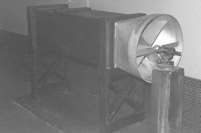 ![]() The Wright Brothers Build a Wind Tunnel 1901, Replica of the wind tunnel designed and built by the Wright Brothers in the fall of 1901 to test airfoil designs. The blower fan, driven by an overhead belt, produced a 25 to 35 mph wind for testing the lift of various plane and curved surfaces. Aerodynamic tables derived from these tests were vital to the successful design of the Wright 1903 Kitty Hawk airplane. Inside the tunnel is a model of a Wright Brothers lift balance used to measure the lift of a test surface. |