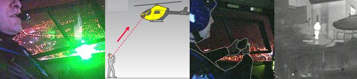 Dana Murphy April 10, 2009, There have been a number of incidents in the United Kingdom in which arriving and departing aircraft have been targeted by youth pointing handheld laser pointers. In 2008, there were 69 incidents. The UK police are using high tech equipment to track down these youth and are aggressively prosecuting them. The police are using equipment designed to tack laser strikes through the use of GPS technology. Patrolling police helicopters have been a big target of youth pointing handheld laser pointers. Police helicopter pilots have reported when flying at low altitudes a laser strike can be blinding, “you can’t see anything” and it puts many people at risk. Bob Jones, head of flight operations at the Civil Aviation Authority (CAA), said: "To those individuals targeting aircraft with laser devices the message is clear - don't. You will be caught and you will be prosecuted and you could spend up to five years in prison. These things are not toys, they pose a serious risk to all flight safety." |