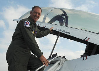 flew with the U.S. Air Force Thunderbirds, on Thursday. Randy Babbitt, who is responsible for the safety of more than 30,000 aircraft and has accumulated more than 14,000 flying hours, got his first ride in the cockpit of a fighter jet. "There are not enough words to describe it," he said. "I have a new appreciation for the fighter aircraft's capabilities and the people who work with them." The U.S. military makes up a large percentage of the daily flights Mr. Babbitt monitors. His familiarization flight with the demonstration team gave him a more in-depth look at the safety preparations that go into a Thunderbird performance and the amount of interaction that is occurs between the U.S. Air Force and the FAA. "Everything we do from the beginning to the end of a flight must be coordinated with the local authorities, so it's important for (Mr. Babbitt) to see how we interact with the civil and commercial air industry," said Lt. Col. Derek Routt, USAFADS operations officer and Thunderbirds No. 7, who flew Mr. Babbit in the red, white and blue F-16D Fighting Falcon. During his flight, Mr. Babbitt experienced every maneuver in a Thunderbird air show performance. He also earned the coveted 9-G pin after experiencing 9G's. "To show him our Air Force and to share our story with someone at his level was amazing," Colonel Routt said. "We have a common bond when it comes to commitment to safety, and I am honored that I was able to share this experience with Mr. Babbitt." In addition to safety, the FAA and the Thunderbirds also share the same goal of keeping the spirit of aviation alive. "The Thunderbirds inspire so many young men and women," Mr. Babbitt said. "Through them, we hope to motivate the next generation of aviators." |