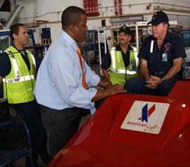Airport workers were able to discuss important issues with Meek and display the enthusiastic support of working people for the candidate. American Airlines and American Eagle workers gave Meek a tour of the facilities and showed him some of the important work they do from checking-in passengers to repairing planes.