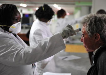 Passengers in these countries affected by Ebola are now being screened for a fever before they board an international flight and passengers arriving from these countries to the United States are as well being screened after they disembark the aircraft. Stephan Monroe from the CDC said, "It's very unlikely that (Ebola victims) would be able to spread the disease to fellow passengers."