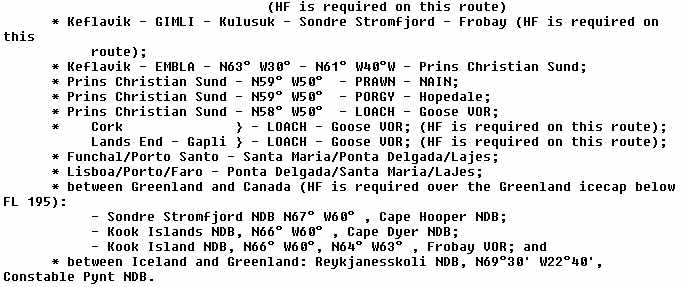 throughout the NAT region for ATC purposes, and HF is mandatory for flight